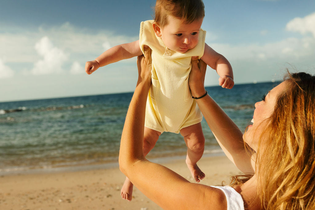 Votre bébé a fait sa première trempette dans la mer salée, quelle aventure ! Sauf que le sel, en plus de dessécher la peau et de causer des irritations, peut amplifier les effets nocifs des rayons UV et donc augmenter le risque de coup de soleil. Le rinçage à l'eau claire après la baignade est essentiel pour protéger votre bébé du soleil.