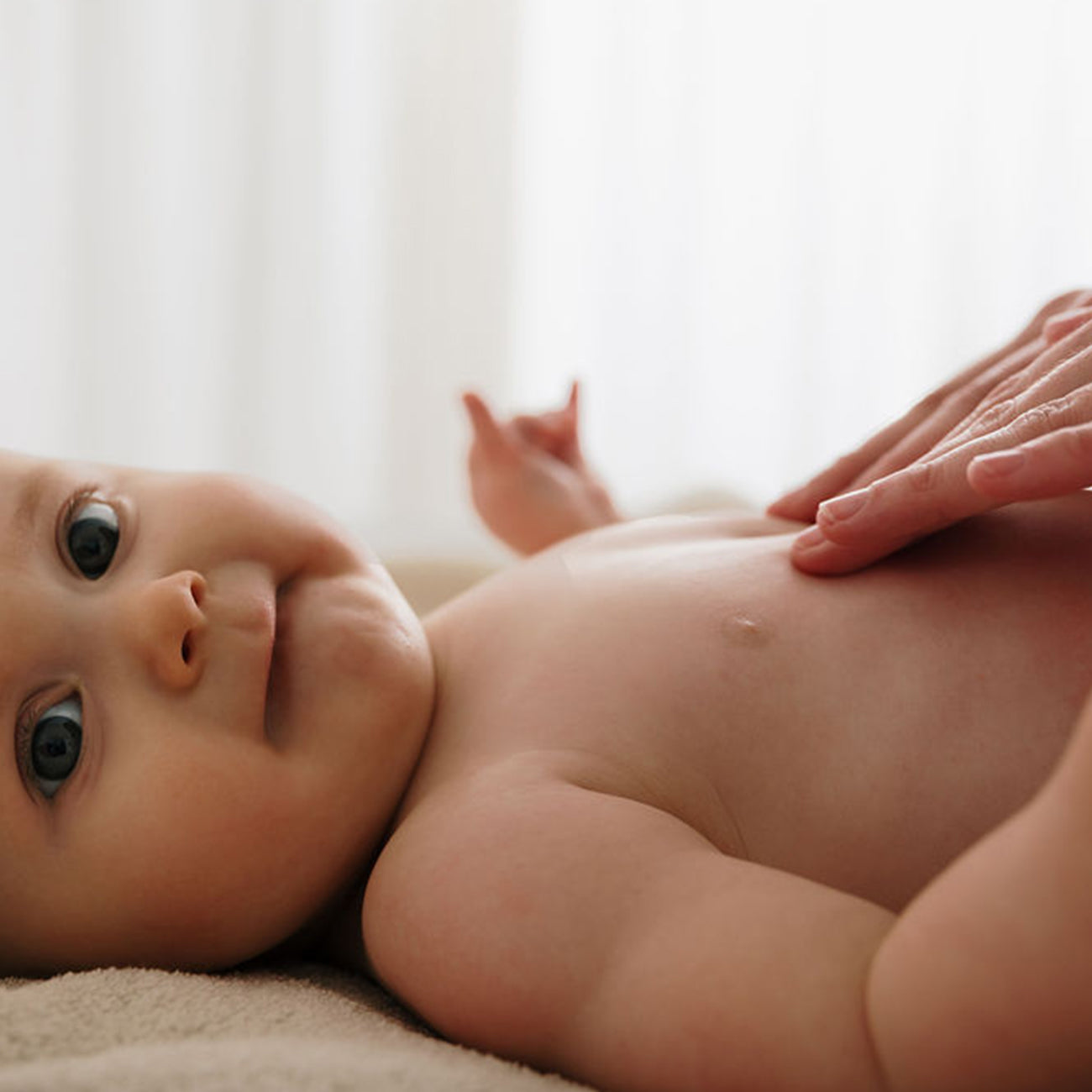 Placez-vous au sol, votre bébé sur vos jambes allongées, parlez-lui, regardez-le et enduisez vos mains d’huile végétale. Placez vos mains sur sa poitrine et écartez-les, puis massez ses bras en les encerclant de vos deux mains. Continuez en massant ses mains. Massez ensuite son ventre du haut vers le bas, puis ses jambes dans le même mouvement que pour les bras. Massez enfin les pieds et le dos de votre bébé. Observez-le, il y a de fortes chances pour qu’il soit aux anges et prêt pour une bonne nuit de sommeil…