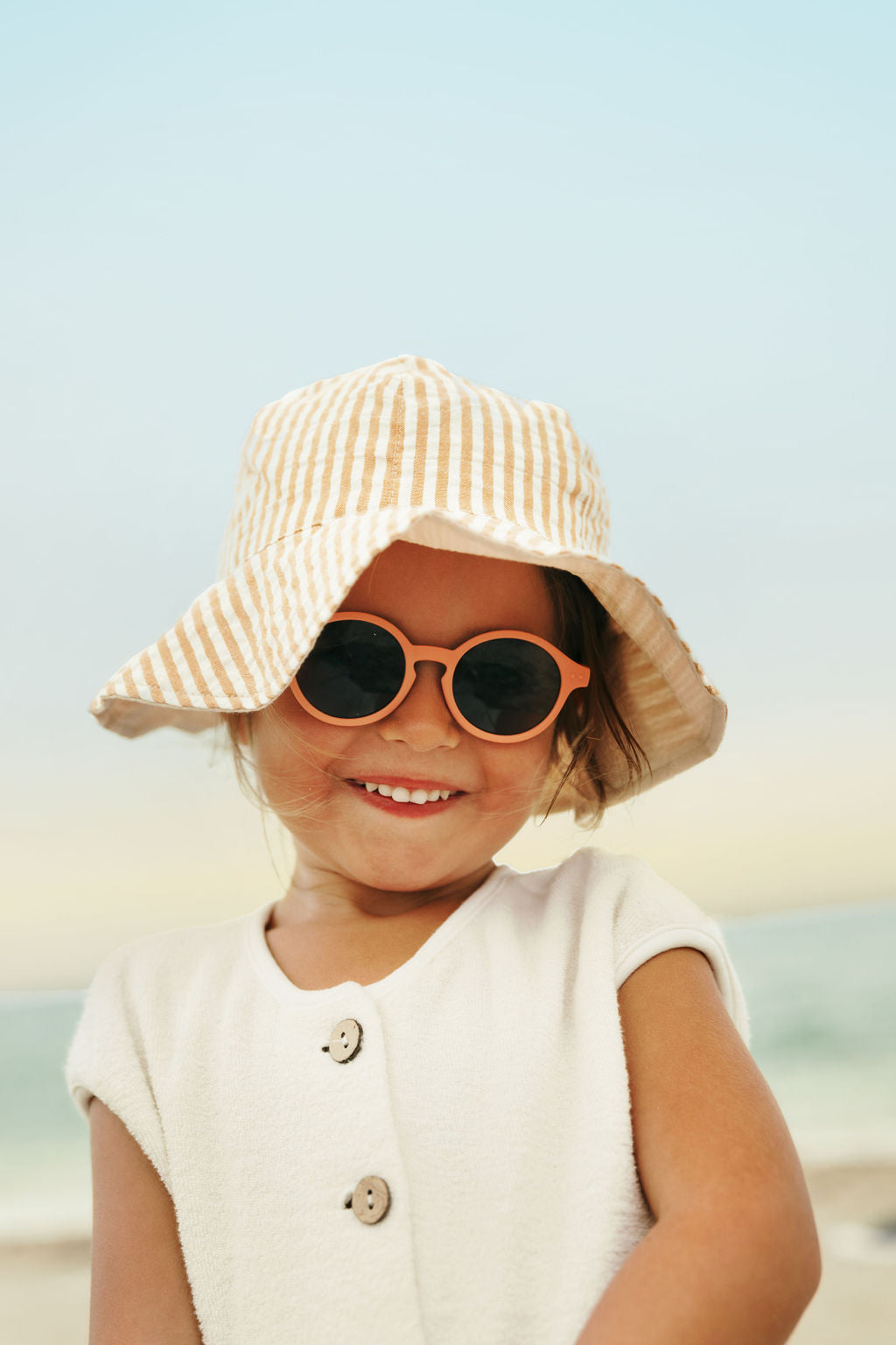 - Des lunettes de soleil anti-UV, avec une monture souple et un filtre adapté, préservent les yeux encore très sensibles de votre bébé.
