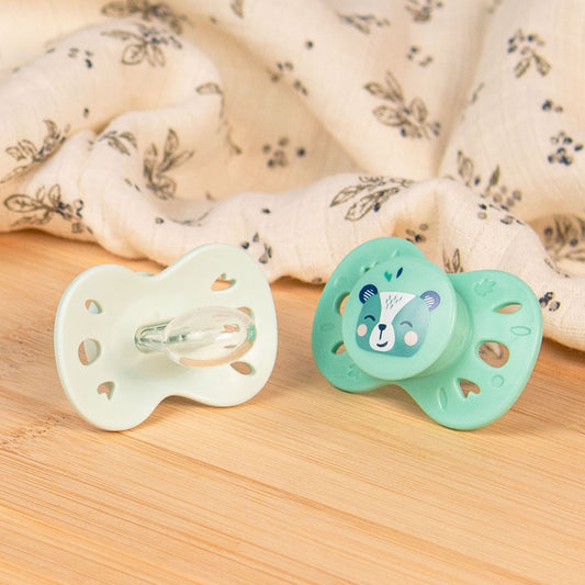 Grâce à leur base extra-fine, nos sucettes garantissent une bonne fermeture labiale, évitent les béances et contribuent ainsi à un développement bucco-dentaire sain pour votre enfant.