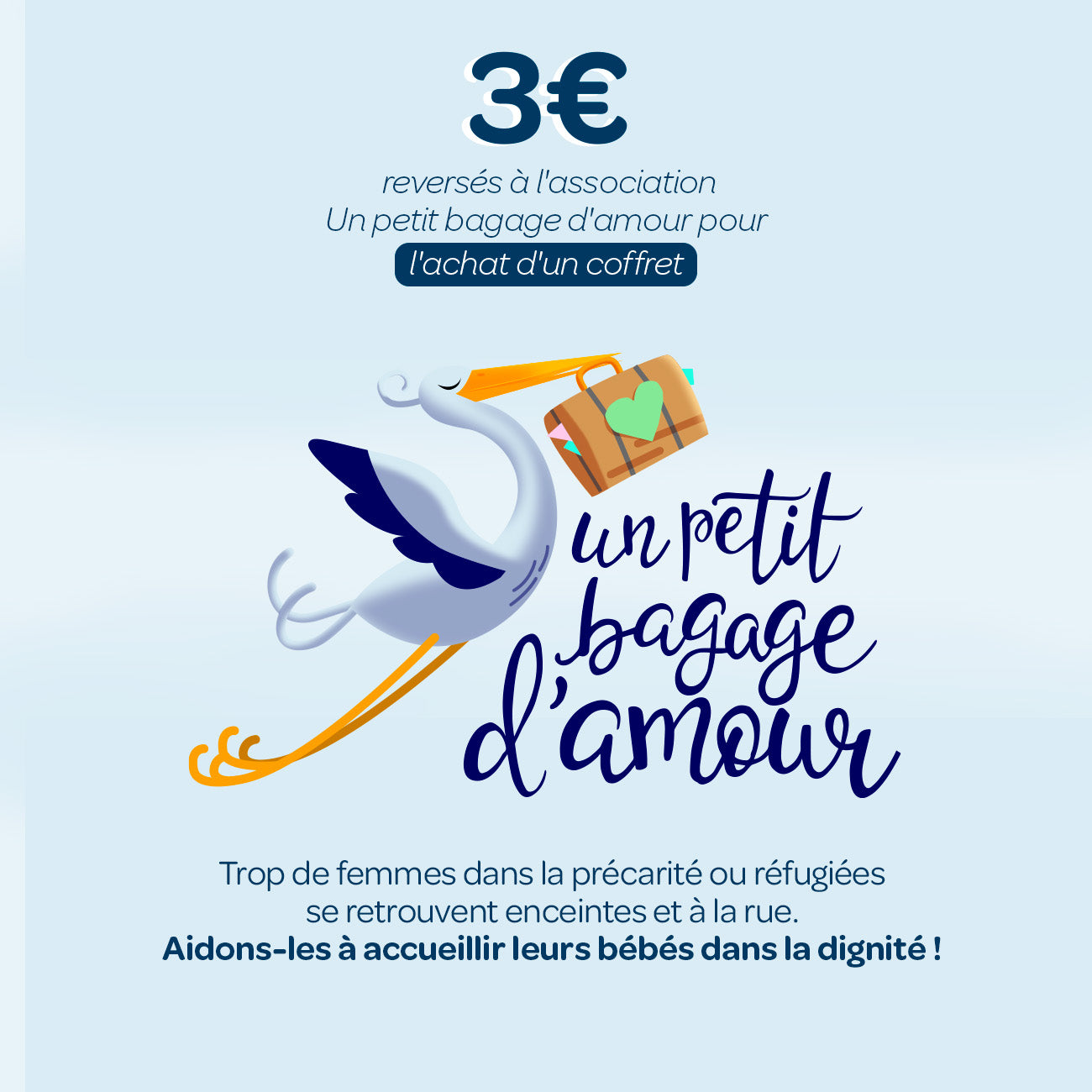 Pour tout achat d'un coffret solidaire, 3€ sont reversés au profit de l'association "Un petit bagage d'amour".
