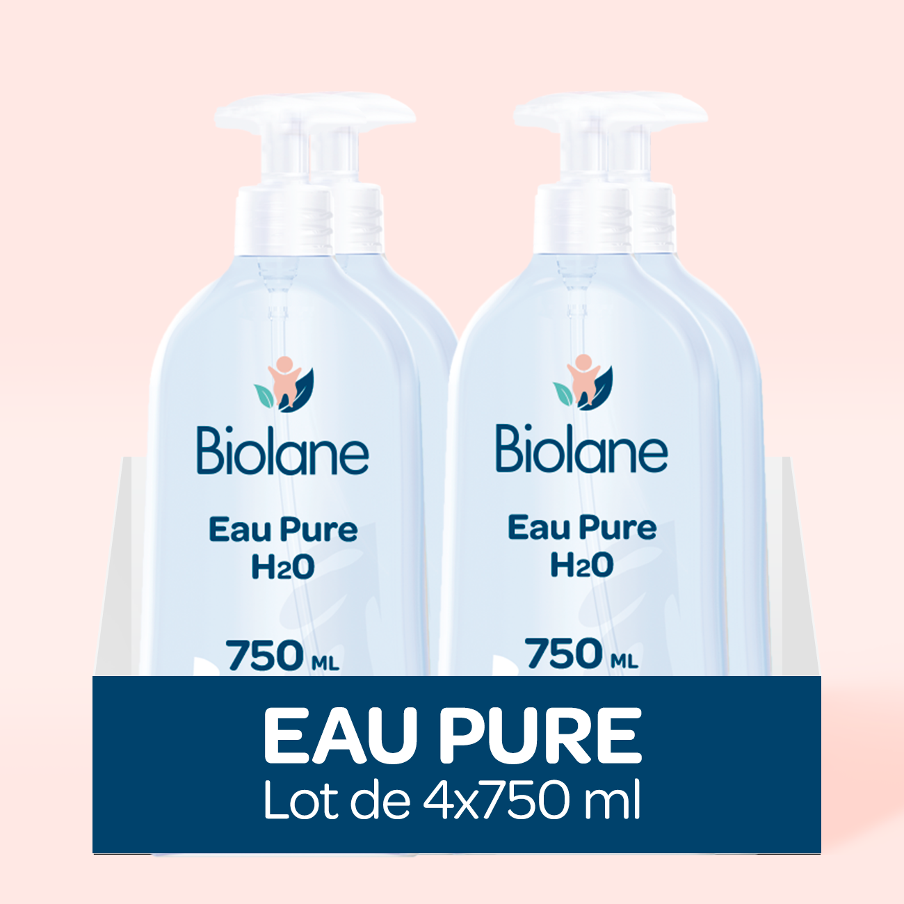 Lot de 4 Eau pure H2O : L'eau pure H2O Biolane nettoie parfaitement et en douceur le visage, le corps et le siège de votre bébé pour une peau propre et délicatement parfumée.