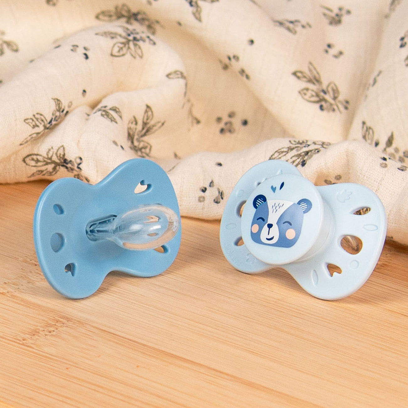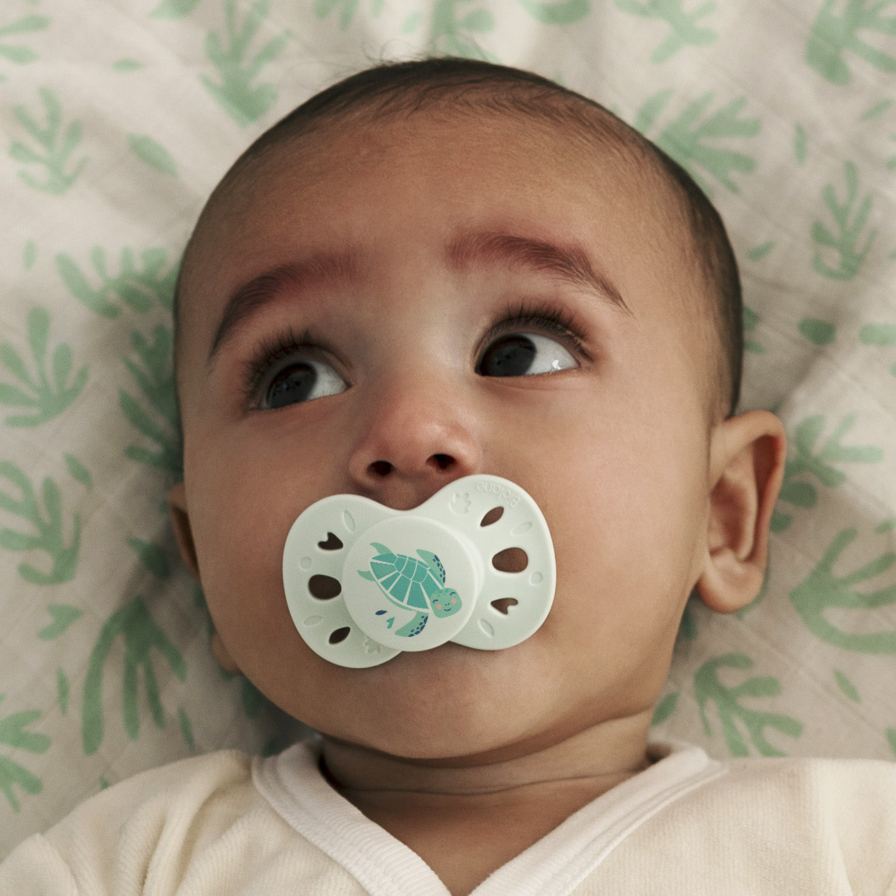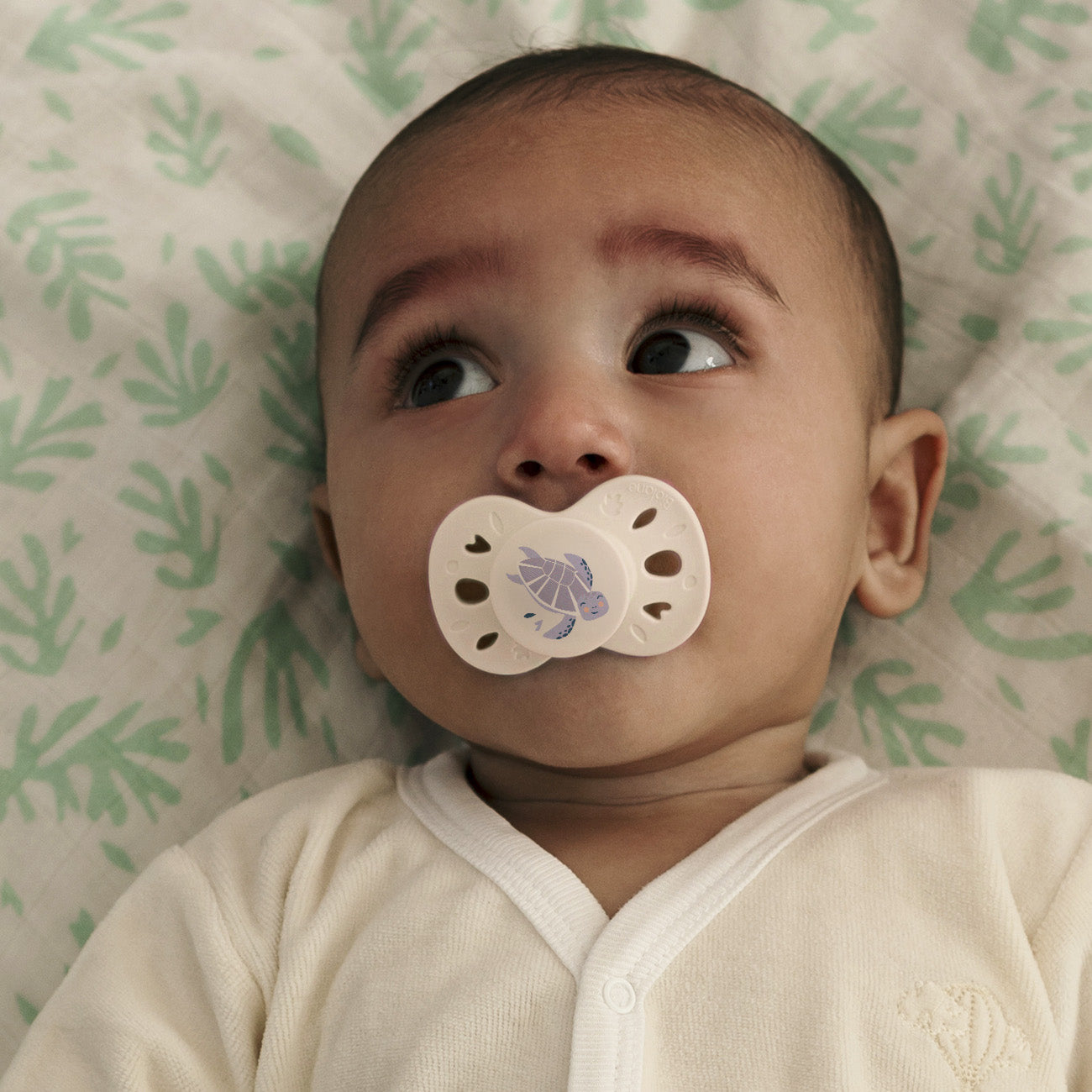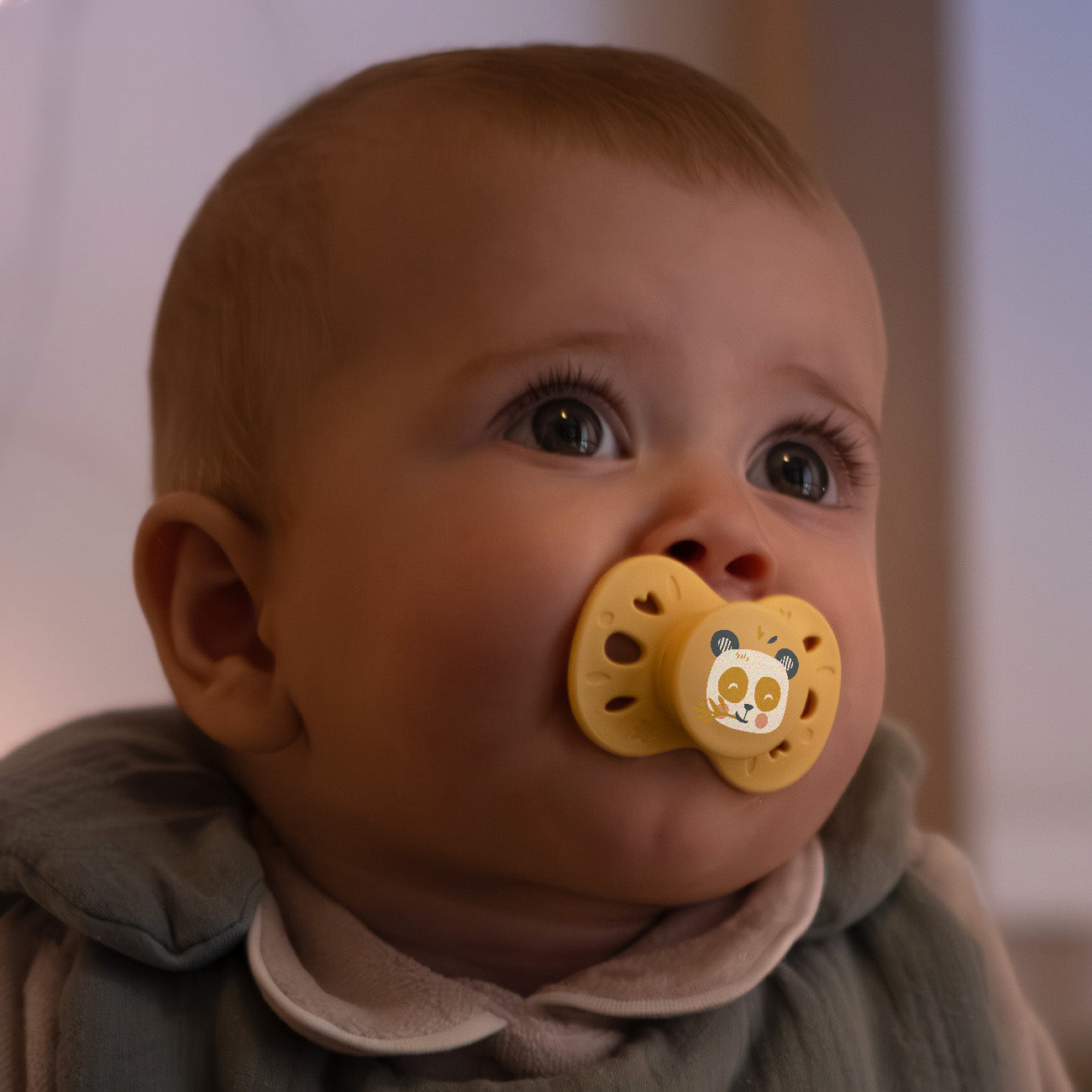 Grâce à leur base extra-fine, nos sucettes garantissent une bonne fermeture labiale, évitent les béances et contribuent ainsi à un développement bucco-dentaire sain pour votre enfant.